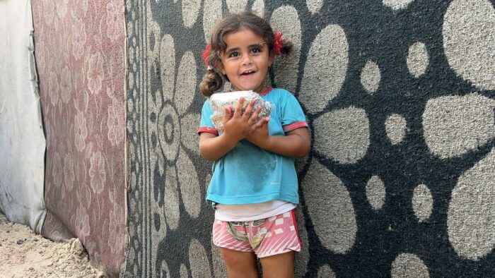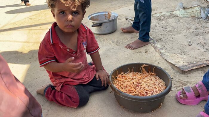 Dès les premiers jours de l’agression, les équipes d’UJFP ont lancé leurs efforts de secours pour fournir de la nourriture aux déplacés. Nos équipes ont compris que l’alimentation est la première source de vie, surtout pour les enfants souffrant de faim et de malnutrition. Les repas chauds distribués quotidiennement ne sont plus seulement de la nourriture, mais un symbole d’espoir et une lueur de vie au milieu des destructions. À Muwasi Khan Younès, des familles de paysans en ont bénéficié, puis l’action s’est étendue récemment aux déplacés de Deir al-Balah. La scène des enfants attendant depuis tôt le matin leur repas illustre toute la détresse humaine. Beaucoup d’entre eux n’ont pas mangé correctement depuis un ou deux jours. Quand arrive le repas chaud, un sourire renaît sur leurs visages, comme une nouvelle vie qui leur est offerte. Certains enfants partagent même leur repas avec leurs jeunes frères et sœurs, une image émouvante de solidarité malgré les épreuves. Ces repas ne nourrissent pas seulement, mais apaisent aussi les mères impuissantes face à la privation de leurs enfants. La poursuite de la distribution constitue un pilier de la résilience des déplacés : chaque repas signifie la vie, chaque bouchée rend une part de leur humanité volée. »