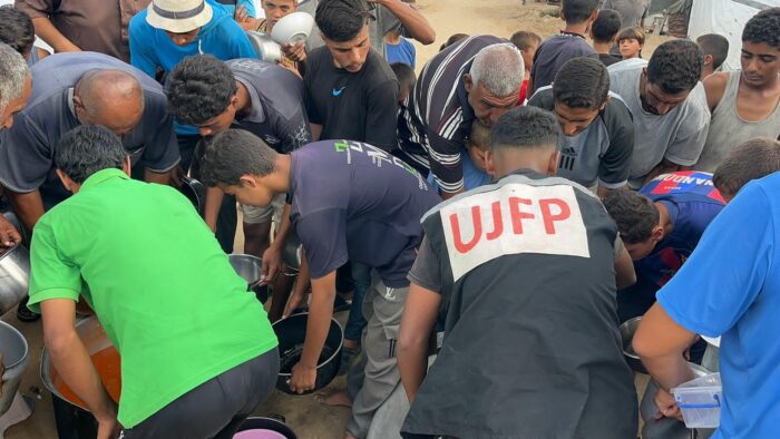 Dans ce contexte, la scène semble être une fresque contradictoire entre désespoir et espoir : les youyous et les cris de joie lors de l’annonce du cessez-le-feu, le bruit des bombardements et des tirs qui n’a pas cessé, des enfants attendant un repas chaud comme s’il s’agissait du cadeau d’une vie, et des mères qui poursuivent leur résistance par la patience et la prière. Et au milieu de toutes ces scènes, les équipes de l’UJFP se tiennent là pour affirmer, par les actes avant les mots, que l’humanité est encore vivante, que la résilience n’est pas qu’un simple slogan, mais une pratique quotidienne traduite dans chaque repas préparé et distribué, dans chaque sourire d’enfant sauvé des griffes de la faim et de la peur. »