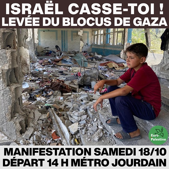 MANIFESTATION GAZA PARIS SAMEDI 18 OCTOBRE 14H METRO JOURDAIN