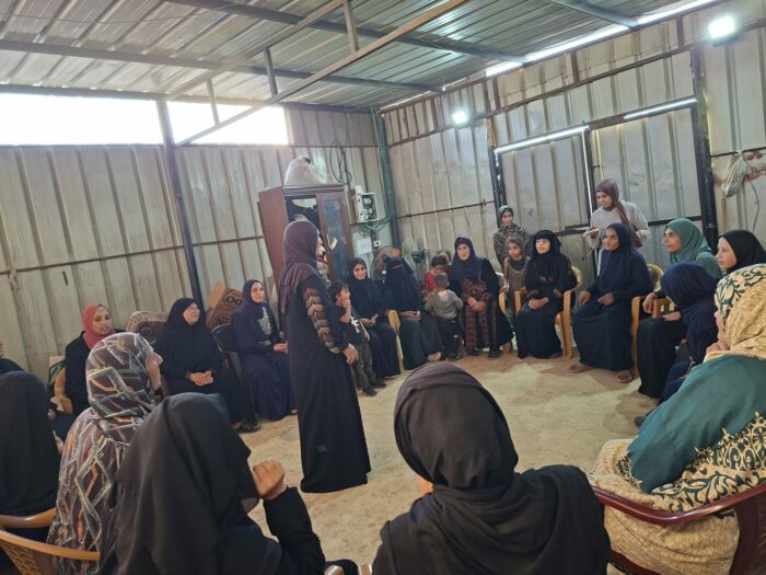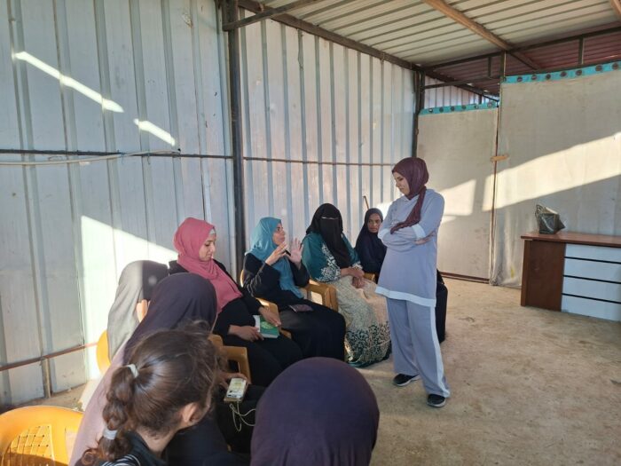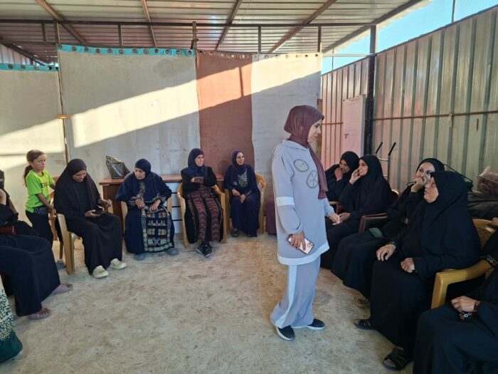 La séance n’a pas parlé de la guerre, mais de la vie qui suit. Elle était une tentative collective de passer de la phase de survie à celle de la construction, de la peur à la planification, du chaos à l’espoir structuré. Vingt-cinq femmes déplacées de l’ouest de Deir al-Balah, vivant actuellement au camp des Amis, ont participé à cette séance. Elles étaient venues, portant dans leurs yeux un mélange de prudence et d’espoir, et dans leurs cœurs un désir sincère de retrouver ce qu’elles avaient perdu, à savoir la tranquillité et la confiance.