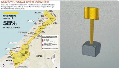 « Depuis la fin de la guerre sur Gaza, le territoire vit dans un état de flou, mêlant inquiétude et attente, comme si le calme qui règne sur les ruines de la destruction cachait derrière lui une tempête plus grande encore, prête à éclater. Le paysage, à la fois militaire et politique, révèle jour après jour des fils entremêlés d’un plan caché qui semble dépasser le simple cessez-le-feu pour viser à redessiner la géographie même du conflit et les frontières de Gaza. Tandis que les regards se tournent vers le passage de Rafah toujours fermé, quelque chose se trame silencieusement sur le terrain, une opération de démarcation du territoire par des marques jaunes éclatantes, des lignes qui dessinent l’avenir de Gaza comme le chirurgien trace d’une main tremblante la cicatrice sur un corps blessé.