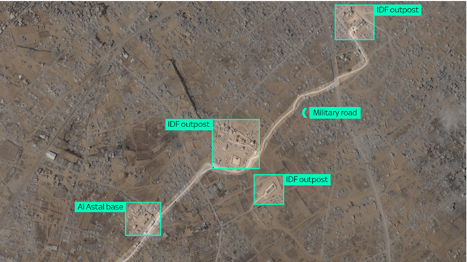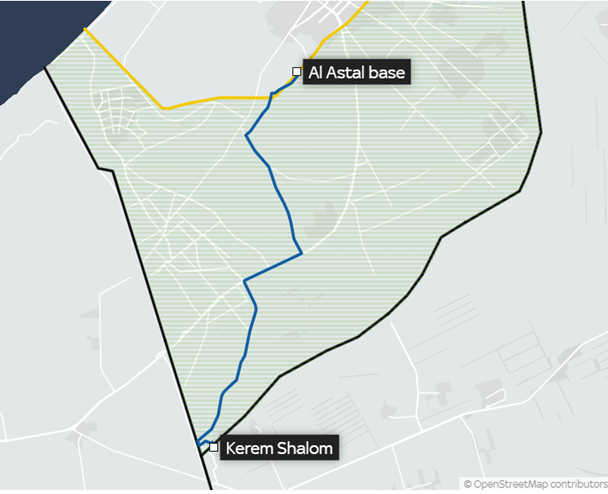 Al Astal dispose d’une route directe vers Kerem Shalom. Route reliant le poste-frontière de Kerem Shalom à la base d’Al Astal.
