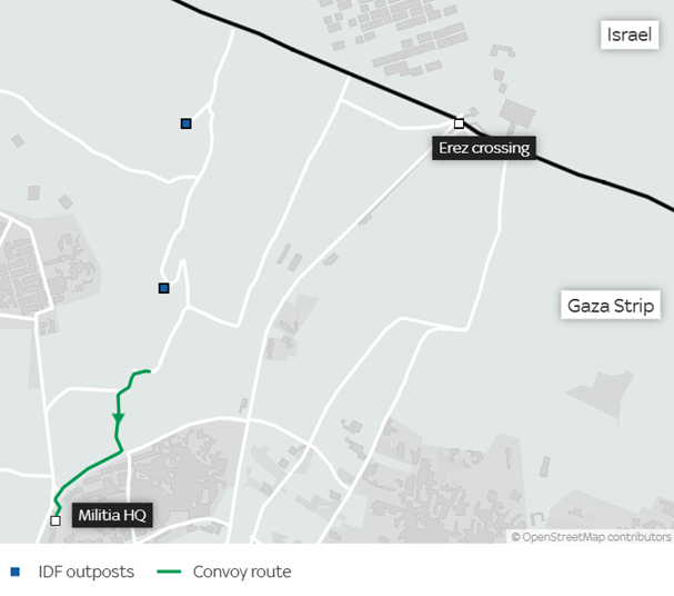 Sky News avait précédemment confirmé que cette route partait soit d’un avant-poste de l’armée israélienne, soit du poste-frontière d’Erez avec Israël.