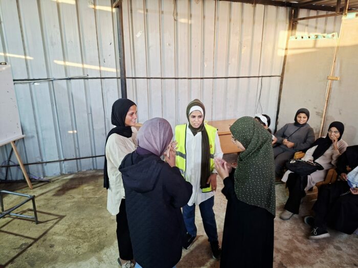Dans le camp de survie de la zone d’Al-Mawasi – Khan Younès, l’équipe a accueilli trente jeunes filles déplacées âgées de treize à dix-sept ans. Leurs visages portaient les marques de l’épuisement, mais leurs yeux brillaient encore d’une lueur de détermination et d’amour pour la vie. Reconstruire le sentiment de force et réparer une identité psychique abîmée par la peur et l’arrachement.