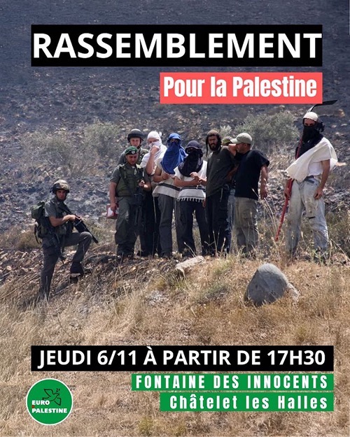 RASSEMBLEMENT POUR LA PALESTINE PARIS JEUDI 6 NOVEMBRE A PARTIR DE 17H30 FONTAINE DES INNOCENTS