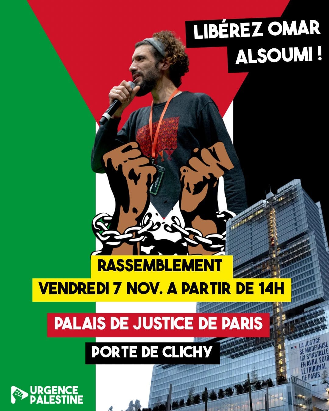 LIBEREZ OMAR ALSOUMI ! RASSEMBLEMENT PARIS VENDREDI 7 NOVEMBRE A PARTIR DE 14H PALAIS DE JUSTICE