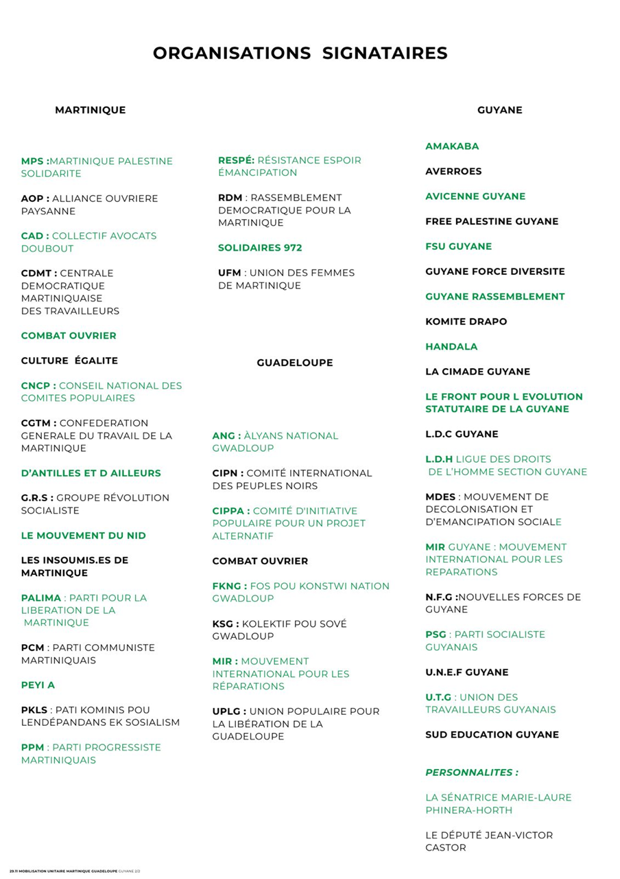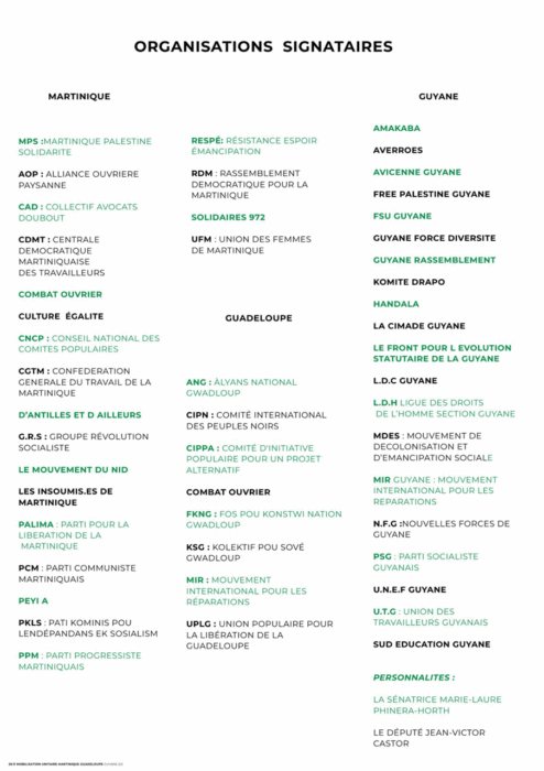 A l’appel des organisations de Martinique, Guyane et Guadeloupe