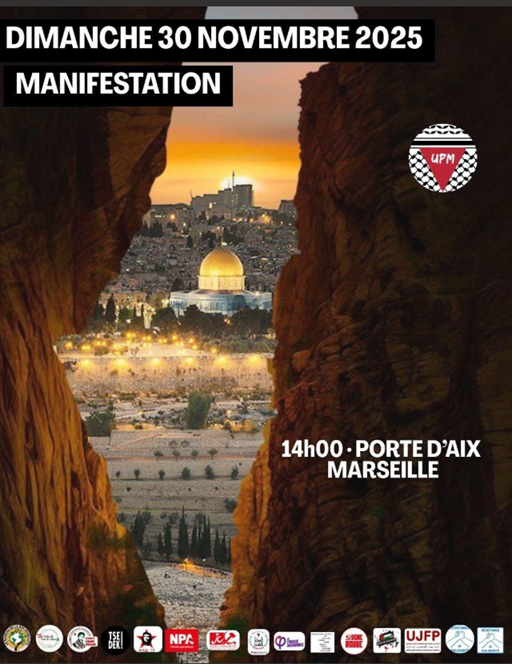 Partager la publication "MANIFESTATION pour la Palestine libre et contre le génocide, même s’ils l’appellent « plan de paix », MARSEILLE DIMANCHE 30 NOVEMBRE, 14H PORTE D’AIX"