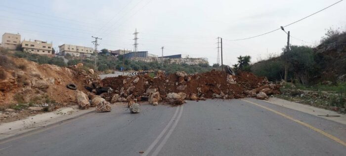 30.11.2025. Les Palestiniens d’Al-Zawiya, dans le centre de la Cisjordanie occupée, ont découvert ce matin que les forces d’occupation israéliennes ont bloqué les entrées de leur ville à l’aide de remblais de terre pour bloquer la circulation palestinienne dans les deux sens. (source Quds News Network)
