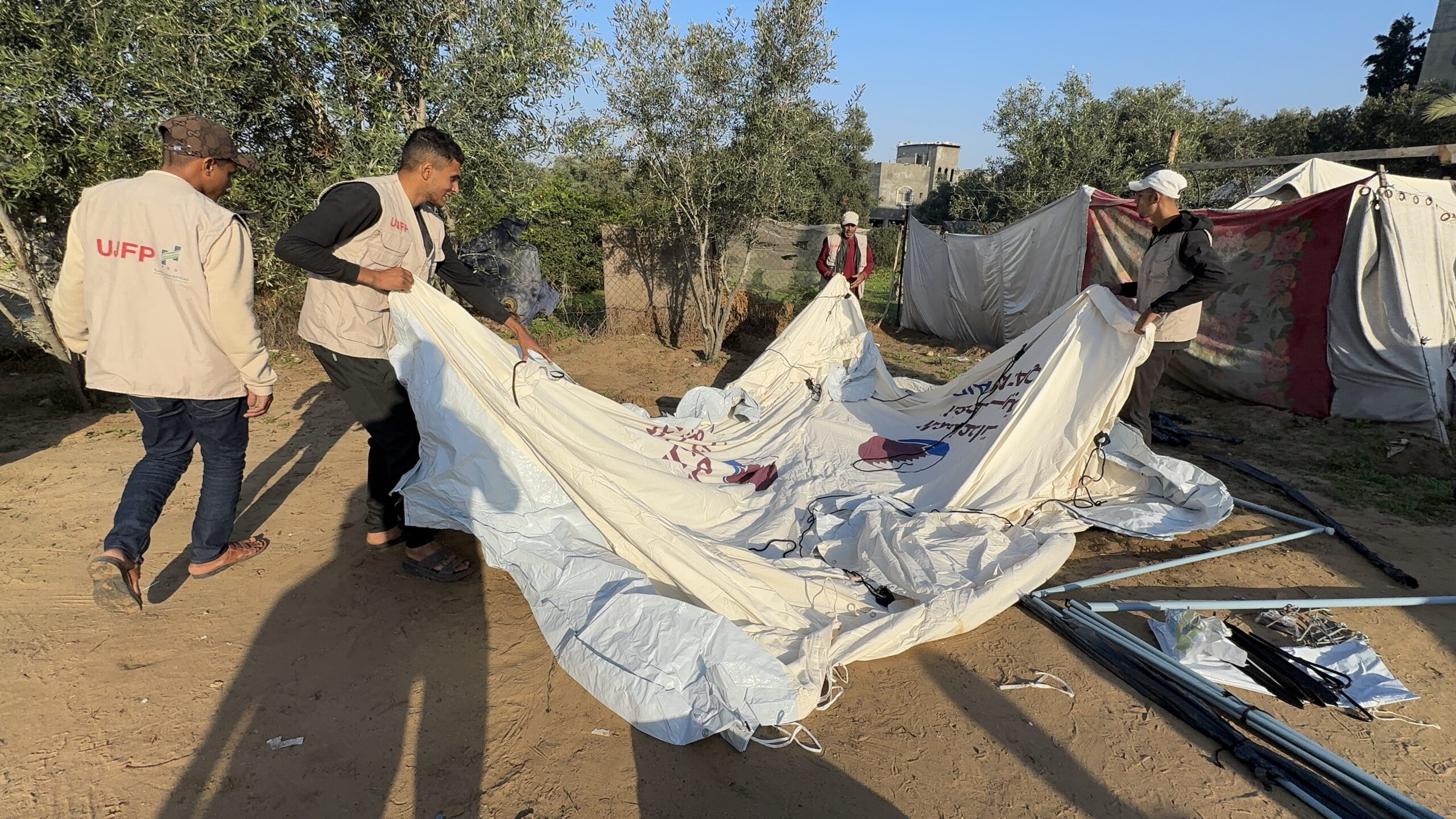 Dans cet environnement sombre, la nécessité d’une intervention urgente est devenue évidente. C’est là que s’est manifesté le rôle humanitaire des initiatives tentant de suturer tant bien que mal des blessures ouvertes. L’initiative Un hiver au chaud, lancée par l’UJFP et visant à fournir des équipements d’hiver aux familles déplacées dans les camps de Gaza, cible de nouveau ce camp après avoir constaté l’ampleur croissante des besoins. Une initiative venue dire que la main qui tente d’alléger la douleur existe encore, et qu’en hiver, la chaleur peut être plus qu’une couverture : elle peut être un message de vie.