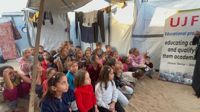 Ainsi, l’action humanitaire n’a jamais été dissociée de l’attachement à l’éducation ; elle en a été le prolongement naturel. Animées par cette conviction profonde, les équipes de l’UJFP ont entrepris de créer des centres éducatifs dans les camps accueillant des milliers de déplacés, afin de compenser les pertes d’apprentissage des élèves et de fournir un environnement sûr aux enfants, leur offrant un minimum de stabilité au milieu du chaos, et leur restituant une part du quotidien qui leur avait été brutalement arraché. Ce fut une initiative empreinte d’un courage exceptionnel dans des conditions inhumaines, mais aussi une démarche indispensable : l’avenir des enfants se construit maintenant, il ne peut attendre la fin complète de la guerre.