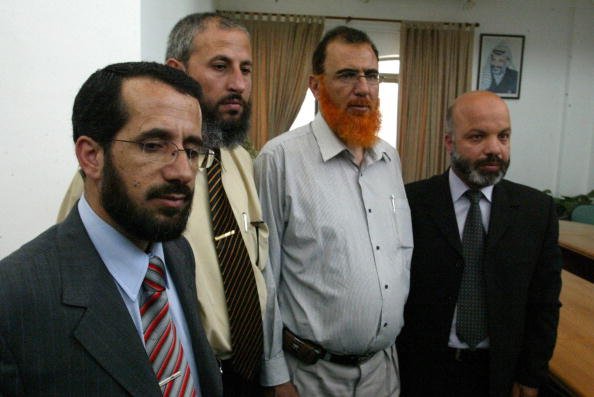 De droite à gauche : les ministres palestiniens Ahmed Attoun, Mohammad Abu Teir et Mohammad Totah, ainsi que le ministre des Affaires de Jérusalem, Khaled Abu Arafeh, réunis dans le bâtiment du Parlement à Ramallah le 30 mai 2006. (photo AFP)