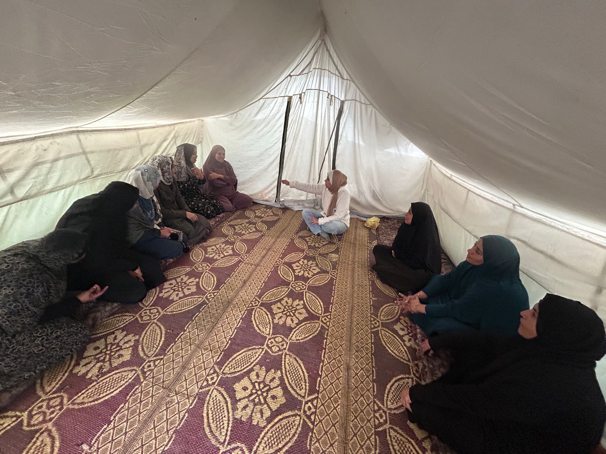 Dans le camp Al-Asdiqa, à l’ouest de Deir al-Balah, et bien que la guerre ne se soit pas arrêtée, les femmes ont quitté la séance en portant une compréhension plus profonde d’elles-mêmes, des outils simples mais efficaces pour faire face aux pressions, et une capacité accrue à continuer de prendre soin de leurs familles au milieu de conditions difficiles — une scène humaine qui confirme que le soutien psychologique peut parfois être plus fort que tout ce que la guerre impose. »