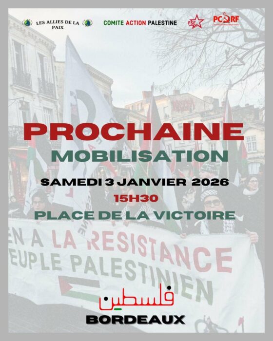 MOBILISATION PALESTINE BORDEAUX SAMEDI 3 JANVIER 2026 15H30 VICTOIRE