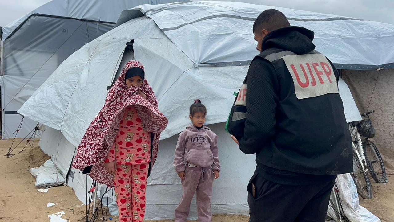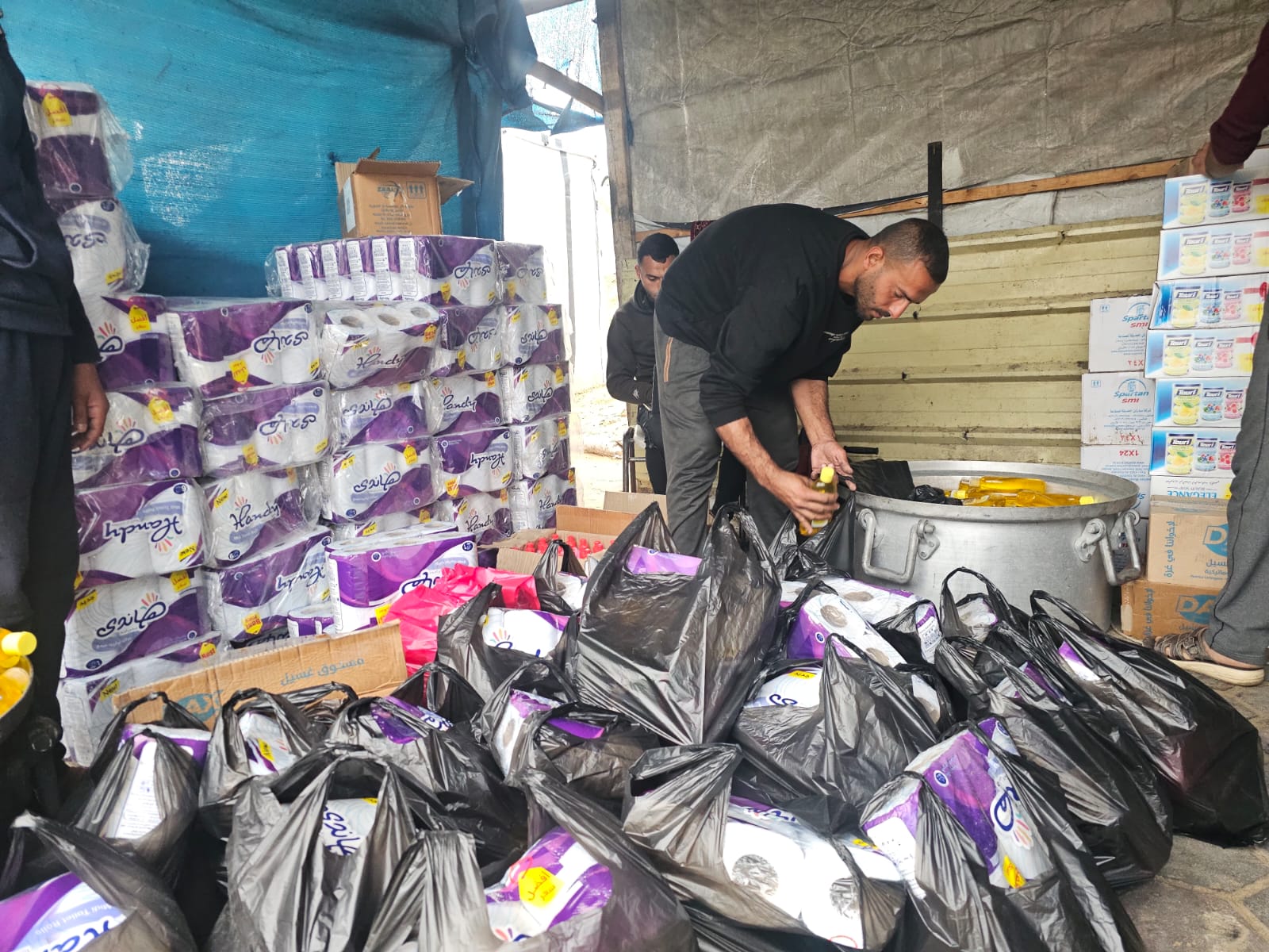 Les camps Al-Fajr et Al-Sumoud figurent parmi les principaux camps avec lesquels l’UJFP travaille directement, puisqu’ils relèvent entièrement de sa responsabilité. Les équipes assurent la gestion des deux camps, le suivi quotidien de la situation des familles déplacées, ainsi que l’identification des besoins essentiels et évolutifs des habitants, dans un contexte humanitaire extrêmement complexe. Le rôle des équipes ne se limite pas à l’aspect administratif, mais englobe également la mise en œuvre d’interventions humanitaires directes. Elles fournissent notamment des repas alimentaires aux familles déplacées dans les deux camps, afin d’atténuer l’insécurité alimentaire et de garantir l’accès à la nourriture aux groupes les plus vulnérables, en particulier les enfants et les personnes âgées. Avec l’arrivée de l’hiver, les défis se sont multipliés, poussant les équipes à s’efforcer de fournir les fournitures hivernales de base, telles que des tentes supplémentaires, des bâches en plastique et des vêtements d’hiver pour les enfants, face aux fortes pluies et aux vents violents qui frappent la zone côtière et aggravent les souffrances des familles déplacées.