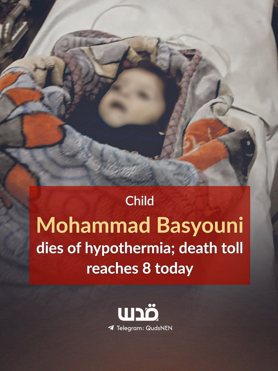 13 janvier 2026. Le petit Mohammad Basyouni est le 8ème enfant mort d’hypothermie aujourd’hui.