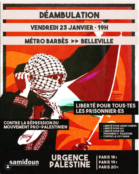 DEAMBULATION PALESTINE PARIS VENDREDI 23 JANVIER 19H METRO BARBES > BELLEVILLE