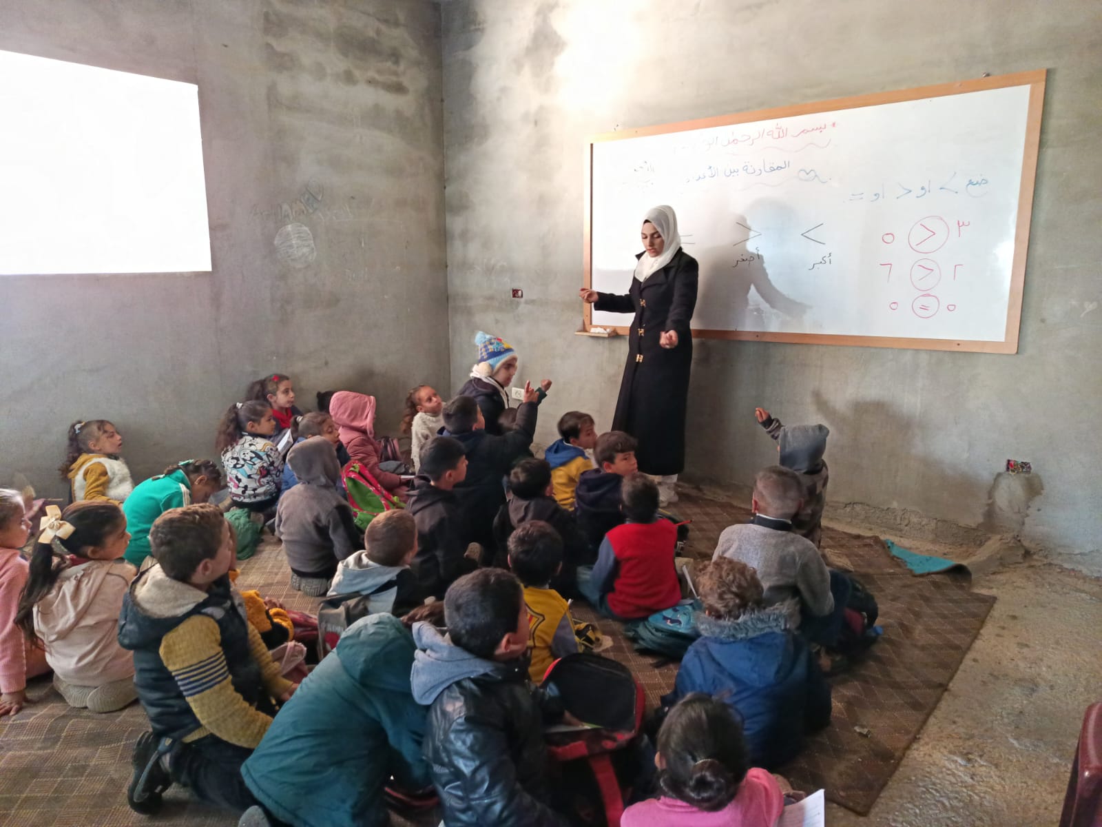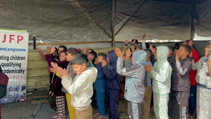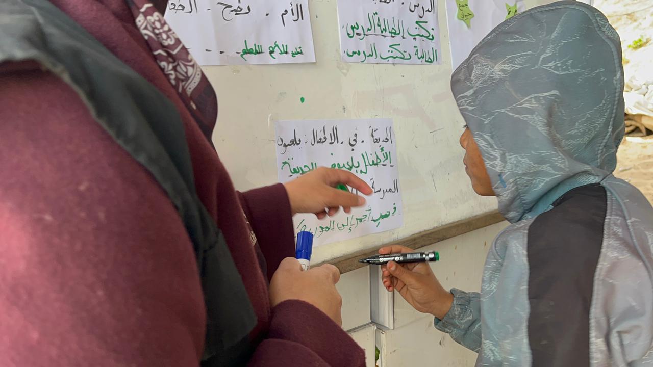 Dans le camp Al-Fajr, la salle de classe simple se transforme en un petit espace d’espoir. Des enfants y écrivent leurs noms, apprennent les mathématiques et retrouvent une partie de leur enfance. La tente ne devient pas seulement un abri, mais un espace d’apprentissage et de vie.