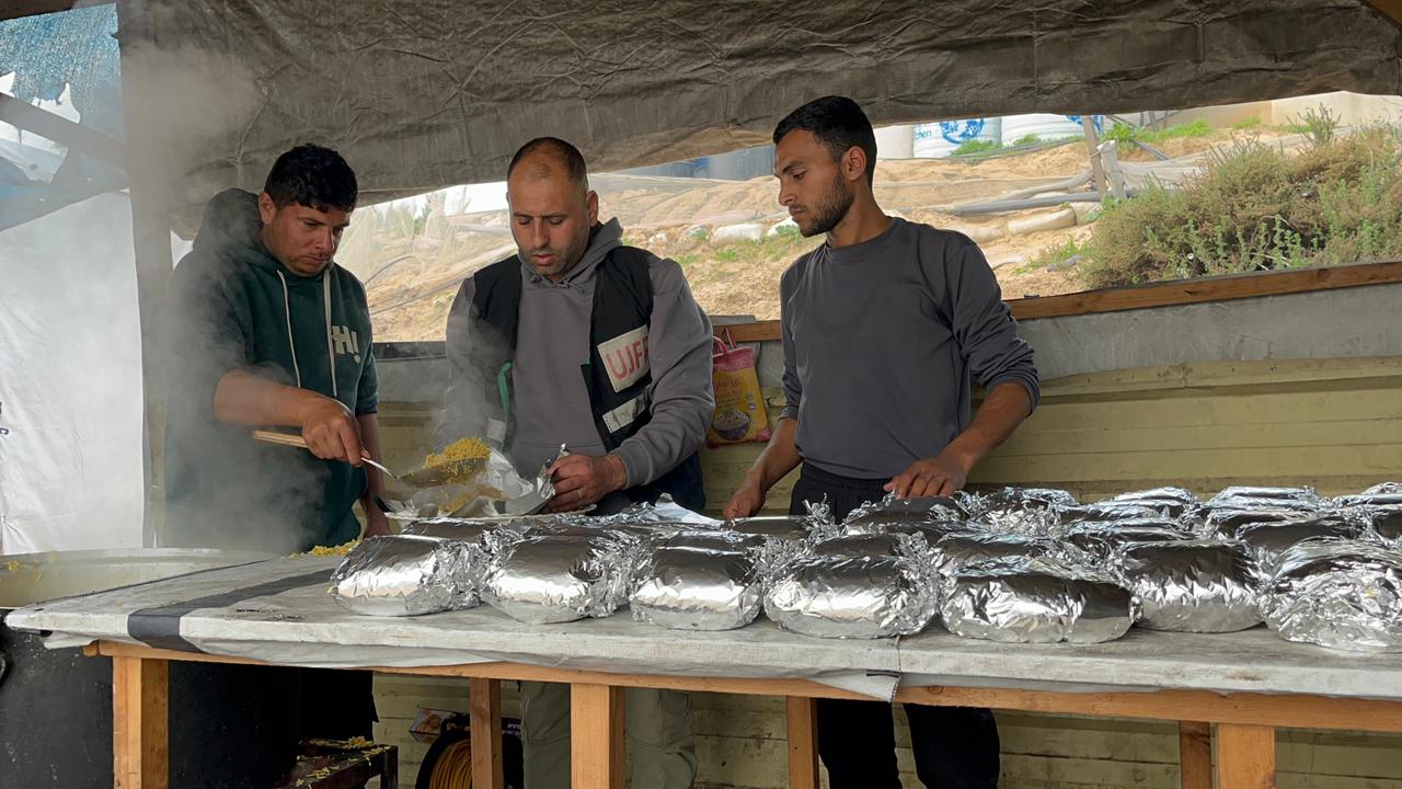 À travers notre cuisine à Mawasi Khan Younès, les équipes de terrain travaillent à livrer des repas quotidiens aux familles les plus vulnérables. Ces efforts se concentrent dans des zones à forte densité de population et aux besoins accumulés, notamment les camps Al-Fajr et Al-Sumoud à Mawasi Khan Younès, où vivent de nombreuses familles agricoles ayant perdu leurs terres et leurs moyens de subsistance, ainsi que notre cuisine dans le camp Al-Hilal à Deir al-Balah, situé au cœur de la ville, qui dessert des centaines de familles déplacées venues de différentes régions. Ces repas constituent une première ligne de protection pour les enfants et les personnes âgées contre les effets de la malnutrition, dans des environnements dépourvus du minimum de sécurité alimentaire. Ils contribuent également à réduire les risques sanitaires liés au manque de nourriture. De plus, ces interventions offrent aux familles un sentiment relatif de stabilité et réduisent l’anxiété liée à l’approvisionnement alimentaire, en particulier dans les camps qui dépendent presque entièrement de l’aide humanitaire. Elle protège le corps contre l’effondrement, soutient la capacité des enfants à se concentrer et à apprendre, et donne aux familles l’énergie physique et psychologique nécessaire pour affronter un nouveau jour.