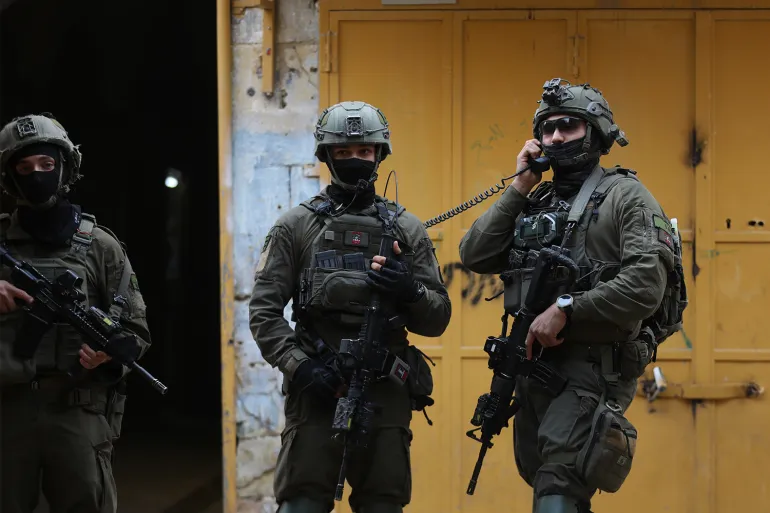 Des soldats israéliens lors d’un raid dans la vieille ville d’Hébron, dans le sud de la Cisjordanie occupée, le 14 février 2026 [Wisam Hashlamoun/Anadolu]