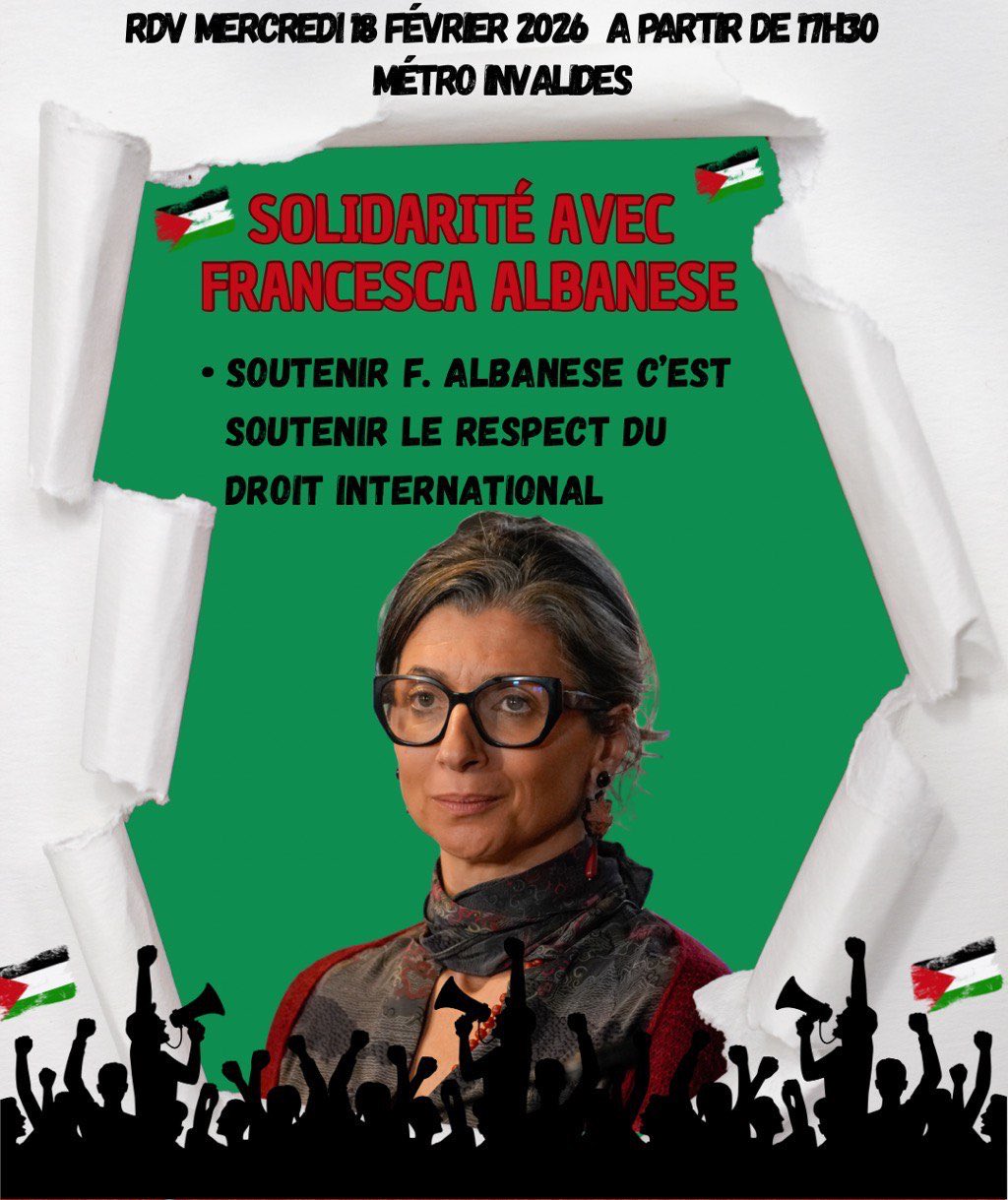 Partager la publication "SOUTIEN MONDIAL À FRANCESCA ALBANESE, ET RASSEMBLEMENT À PARIS MERCREDI 18 FEVRIER"