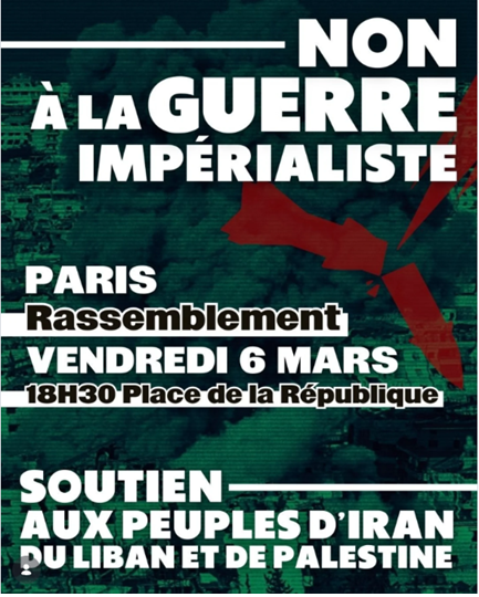 NON A LA GUERRE IMPERIALISTE – RASSEMBLEMENT PARIS VENDREDI 6 MARS 18H30 PLACE DE LA REPUBLIQUE