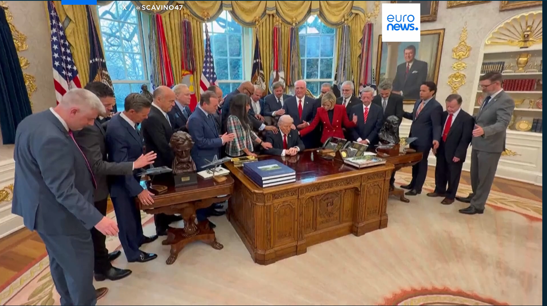 Le spectacle obscène de Trump entouré de chefs religieux protestants, évangéliques, chrétiens et sionistes, priant pour une victoire américaine et israélienne contre les non-blancs et non-chrétiens qu’ils bombardent, a donné le ton à la propagande de l’administration américaine. Mais cela reflète aussi un clivage idéologique croissant au sein de la droite américaine. D’un côté, les chrétiens évangéliques et les sionistes juifs soutiennent les guerres contre l’Iran et les Palestiniens ; de l’autre, les chrétiens de droite estiment que l’Amérique est entraînée dans des guerres au profit d’Israël.