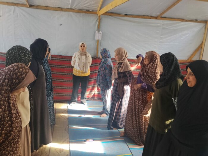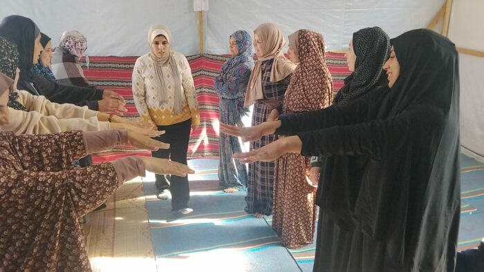 Avant le début des activités, l’équipe a accueilli les participantes avec des mots simples mais sincères. Ils ont souligné que cette séance visait à honorer la force des femmes palestiniennes et à rappeler que parler de ses émotions et de ses pressions n’est pas un signe de faiblesse, mais une étape importante vers le rétablissement. L’organisation et son rôle dans le soutien psychologique et social aux communautés touchées ont également été présentés, ainsi que ses efforts pour créer des espaces sûrs où chacun peut s’exprimer et partager son expérience.
