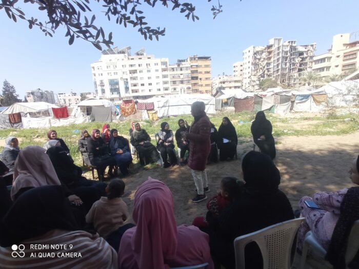 Une autre participante a évoqué la Journée internationale des femmes d’une manière différente. Elle a expliqué que les femmes de Gaza n’ont pas besoin d’une célébration traditionnelle pour reconnaître leur valeur, car chaque jour où elles parviennent à protéger leurs familles est en soi un jour de force. Elle a également ajouté que cette rencontre dans le camp lui avait donné le sentiment que les histoires des femmes méritent d’être entendues et racontées.