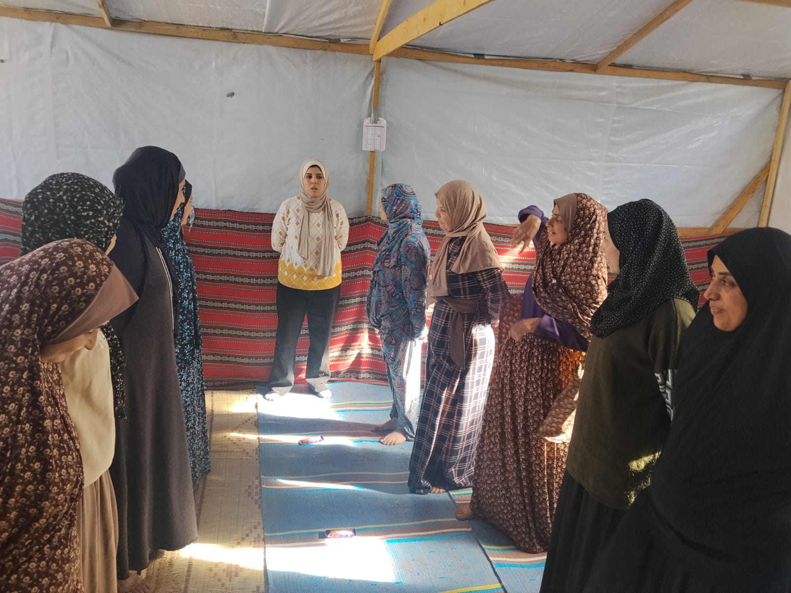 Les activités ont commencé par des exercices simples visant à réduire la tension physique et psychologique. Les femmes se sont assises en cercle et ont pratiqué des exercices de respiration profonde qui les ont aidées à se détendre un peu après de longues journées marquées par l’inquiétude et l’épuisement. Ces instants pouvaient sembler modestes, mais pour beaucoup d’entre elles, c’était la première fois depuis longtemps qu’elles s’accordaient une pause pour simplement respirer.