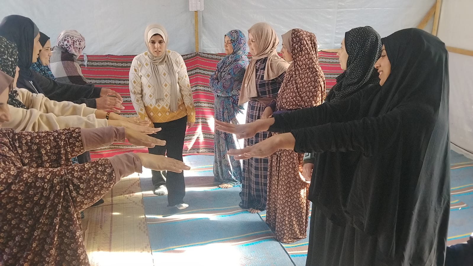 Avant le début des activités, l’équipe a accueilli les participantes avec des mots simples mais sincères. Ils ont souligné que cette séance visait à honorer la force des femmes palestiniennes et à rappeler que parler de ses émotions et de ses pressions n’est pas un signe de faiblesse, mais une étape importante vers le rétablissement. L’organisation et son rôle dans le soutien psychologique et social aux communautés touchées ont également été présentés, ainsi que ses efforts pour créer des espaces sûrs où chacun peut s’exprimer et partager son expérience.