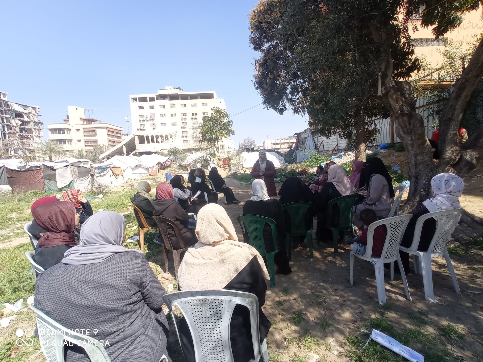 Une autre participante a évoqué la Journée internationale des femmes d’une manière différente. Elle a expliqué que les femmes de Gaza n’ont pas besoin d’une célébration traditionnelle pour reconnaître leur valeur, car chaque jour où elles parviennent à protéger leurs familles est en soi un jour de force. Elle a également ajouté que cette rencontre dans le camp lui avait donné le sentiment que les histoires des femmes méritent d’être entendues et racontées.