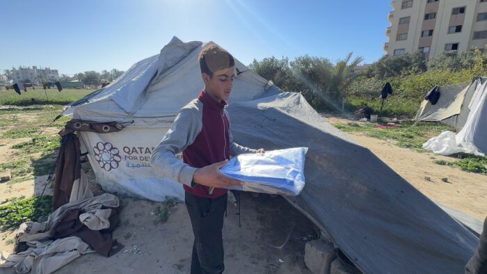 La réalité sur le terrain dans les camps révèle des besoins multiples et évolutifs. Les familles déplacées, ayant fui précipitamment, ont perdu la plupart de leurs biens et dépendent presque entièrement de l’aide. Depuis le début de l’escalade à Gaza, les équipes ont mis en place une série d’initiatives pour répondre à ces besoins : distribution de tentes, de vêtements et de couvertures, ainsi que de bâches en plastique pour protéger contre les intempéries, en plus de paniers de légumes. Les aspects sanitaires n’ont pas été négligés, avec la distribution de produits d’hygiène, de compléments nutritionnels et de lait infantile, essentiels pour préserver la santé. Dans ce contexte, au cours de la semaine écoulée, 37 bâches en plastique, 39 couvertures et 22 vêtements pour enfants ont été distribués, dans le cadre de la réponse aux besoins urgents des familles déplacées dans la zone centrale de Gaza. Ces initiatives constituent une réponse intégrée qui respecte la dignité humaine et le droit à un minimum de stabilité. »