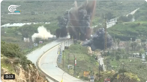 Des images montrent le moment où une violente frappe israélienne a touché le pont al-Qasmiyah au Sud-Liban (vidéo sur le compte X de Al Mayadeen)