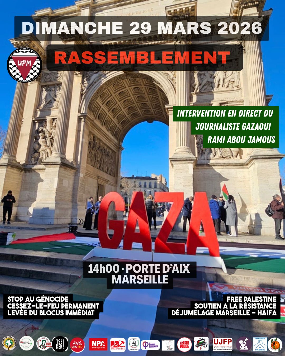 RASSEMBLEMENT GAZA MARSEILLE DIMANCHE 29 MARS 14H PORTE D’AIX