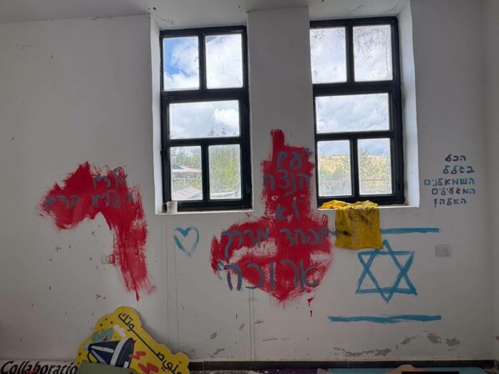 Actes de vandalisme commis par des colons contre le village de jeunes de Kafr Ni’ma, en Cisjordanie occupée, février 2026. Crédit : page Facebook du Forum des jeunes de Sharek