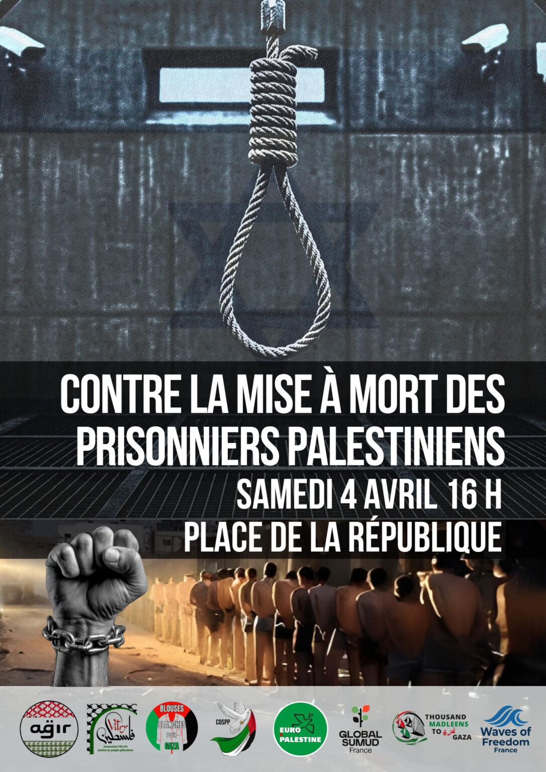 RASSEMBLEMENT CONTRE LA MISE A MORT DES PRISONNIERS PALESTINIENS, PARIS, SAMEDI 4 AVRIL, 16H REPUBLIQUE