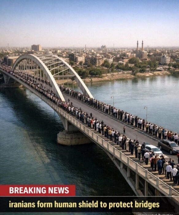 Le 7 avril, devant les menaces de D. Trump d’une nouvelle attaque US-israélienne contre leur pays, les Iraniens sont sortis par milliers pour protéger de leurs corps les infrastructures essentielles menacées. Ici le Pont blanc, à Ahvaz, Iran. VIDEO.