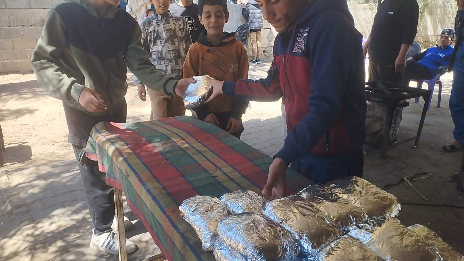 Le programme de distribution alimentaire lancé dans les camps Al-Fajr et Al-Soumoud, ainsi que dans les camps environnants, est venu répondre directement à cette réalité. Les agriculteurs, autrefois producteurs de nourriture, se sont retrouvés soudainement en position de ceux qui en ont besoin, rendant leur soutien indispensable. Les cuisines de terrain, actives quotidiennement dans ces camps, sont devenues une véritable bouée de sauvetage. Dès les premières heures du matin, les équipes commencent à préparer les repas avec les ressources disponibles, pour les distribuer directement aux familles. Les agriculteurs déplacés, ainsi que d’autres familles, dépendent désormais de ces repas comme d’une source essentielle de survie.