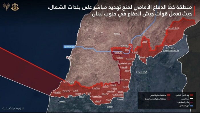 Une nouvelle carte du sud du Liban occupé par le régime sioniste, avec une projection sur les champs gaziers e pétroliers en mer. Source.