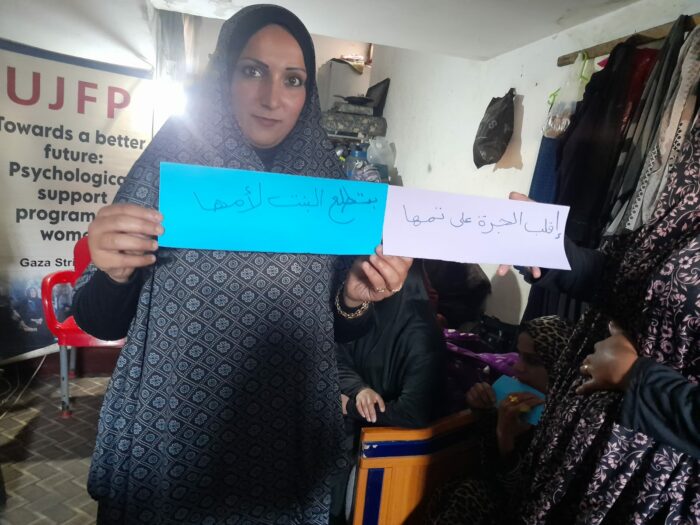 Témoignages de Gazaouis : La survie qui s’organise au jour le jour dans l’enfer de Gaza – partie 681 / 22.04 – Ateliers de soutien pour les femmes : camp d’Al-Durra et Al-Najaa
