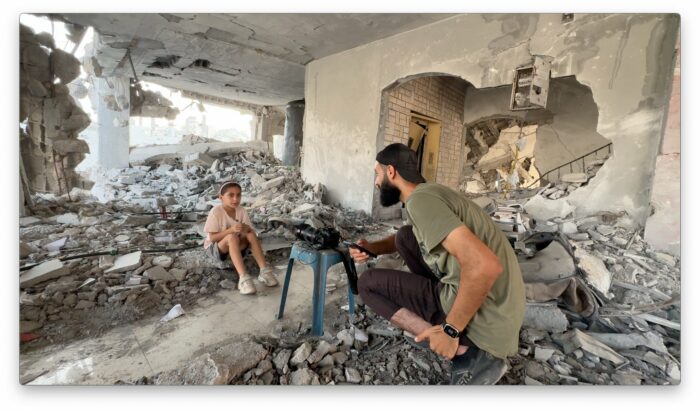 Photo extraite du film « 2 ans en immersion dans l’enfer de Gaza », réalisé par Charles Villa à partir du vlog du reporter Palestinien Suhail Nassar, qui a filmé son quotidien et celui de deux enfants dans le génocide de la bande de Gaza. Le film est disponible sur la chaine Youtube de Charles Villa, ICI.