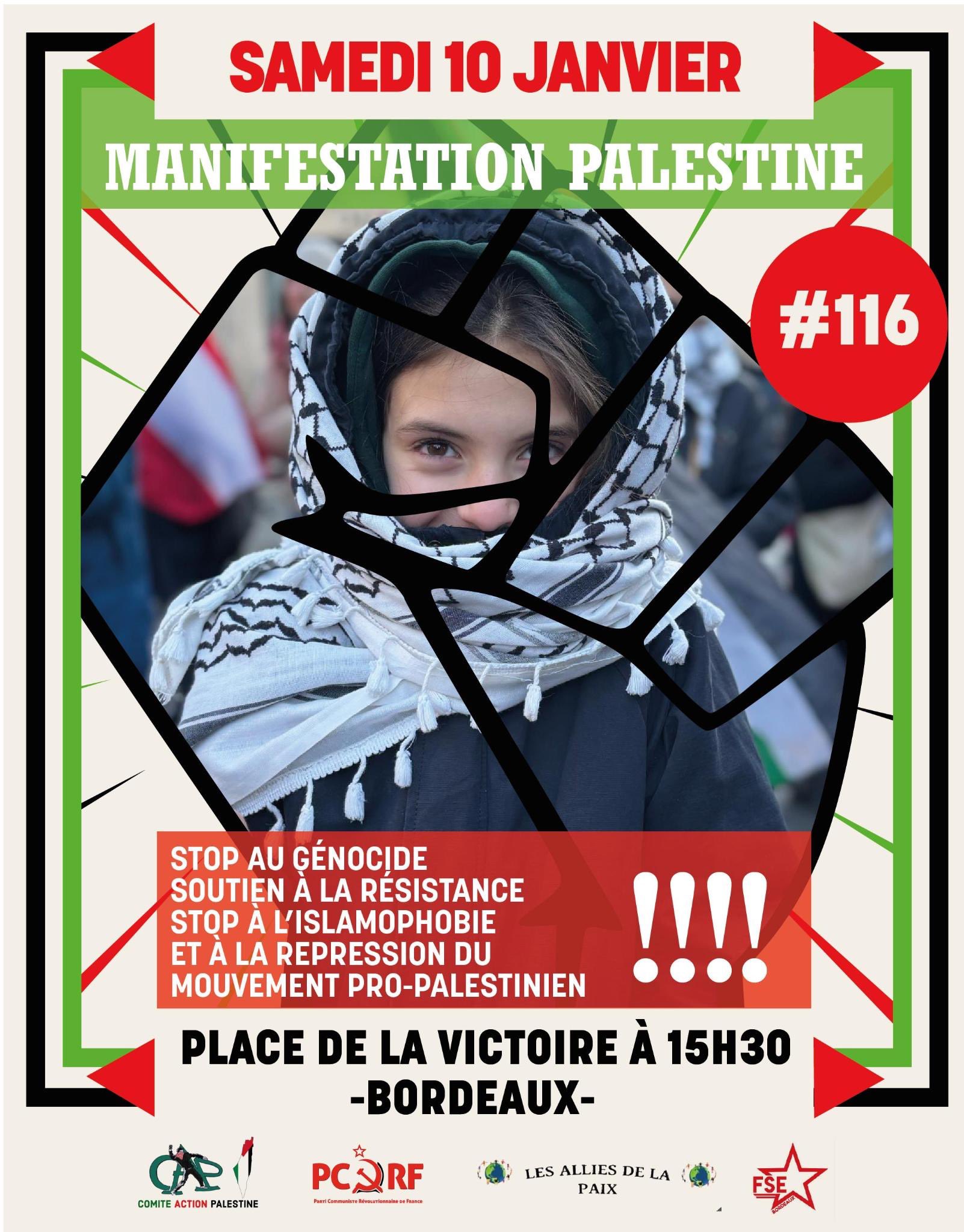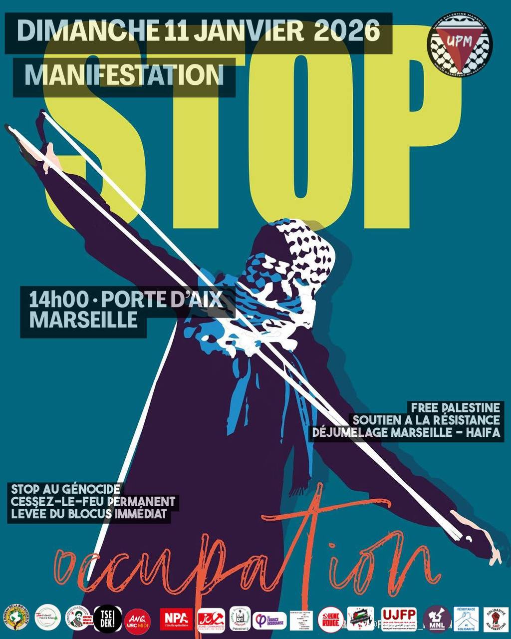 MANIFESTATION POUR LA PALESTINE LIBRE ! MARSEILLE dimanche 11 janvier 14h Porte d’Aix